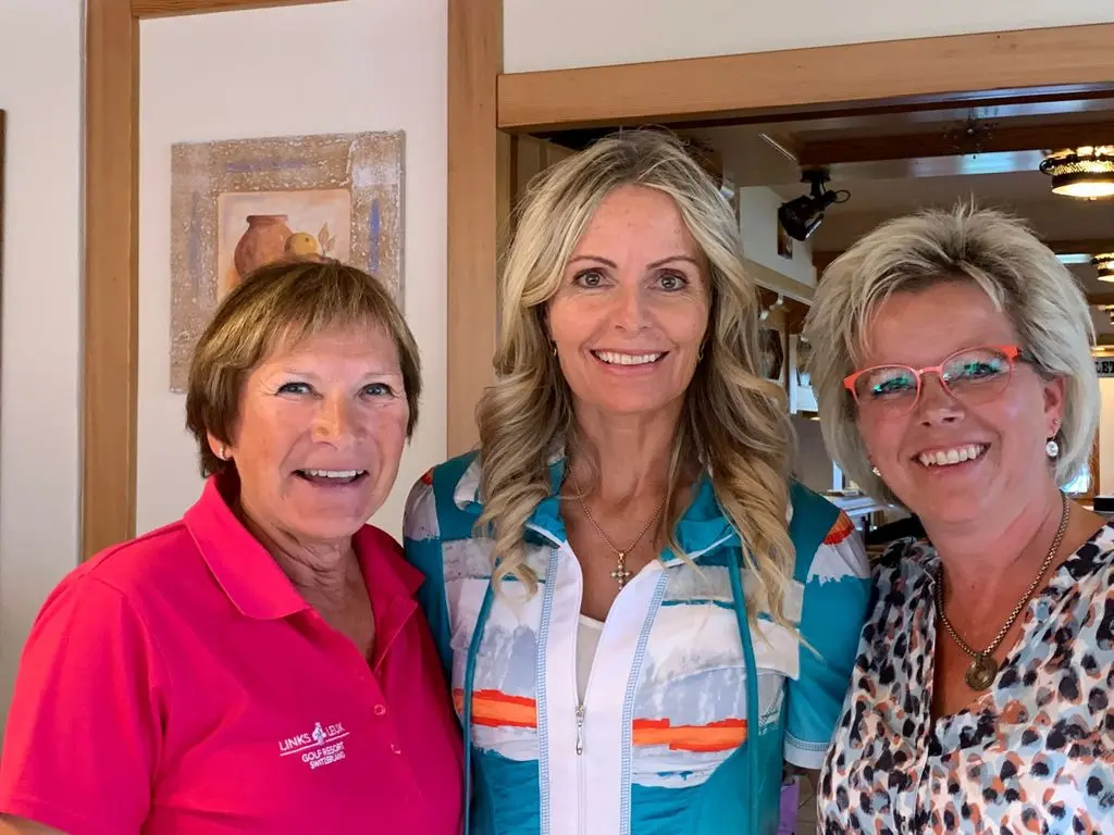 Das heutige Freundschaftstreffen mit unseren Golfkolleginnen von "Derdirii" und "Derdirüs" verzeichnet einen Vollerfolg. Die erfreulich hohe Beteiligung von 51 Ladies, die hervorragend in Schuss gehaltene Golfanlage, die angenehmen Wetterverhältnisse die gewohnt perfekte Organisation durch unsere Captain Sandra Jossen, die maximale Befriedigung unserer Gaumenfreuden und der unterhaltsame Zusammenhock mit Gleichgesinnten lassen keine Wünsche offen.