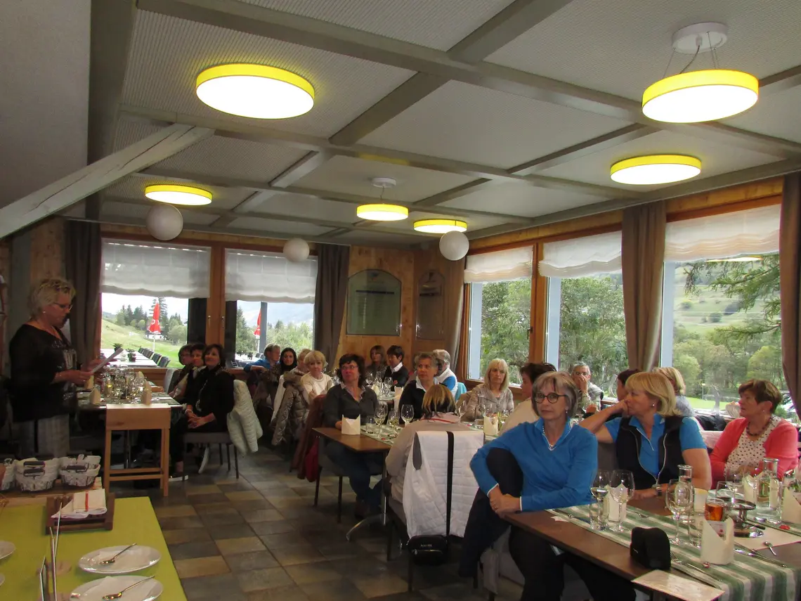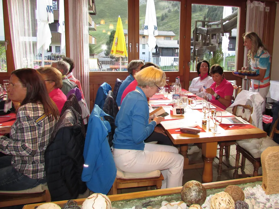 Im behaglichen Golfrestaurant steigt mit der Temperatur auch die Stimmung rasch an. Agatha Zeiter spendiert einen ersten Apéro, die Neueinsteigerinnen Bernadette Escher und Nicole Schmid bescheren uns eine 2. Runde. Vielen herzlichen Dank für die grosszügige Geste!