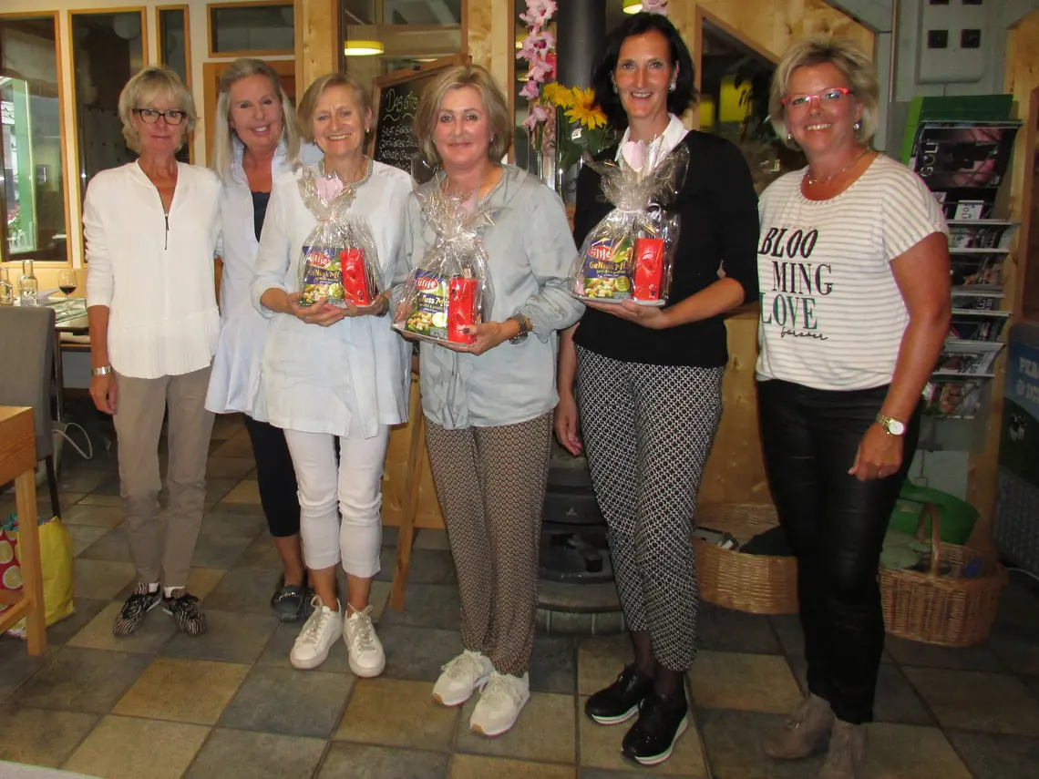 Die Arbeit des Vorstandes mit Sandra Jossen, Ursula Carlen und Trudy Feller wird von den Ladies mit einem schönen Herbstarrangement honoriert, den uns Regina Kummer im Namen aller überreicht. Eure Unterstützung jederzeit ist unschätzbar und wunderbar - Vergälts Gott fer alles!