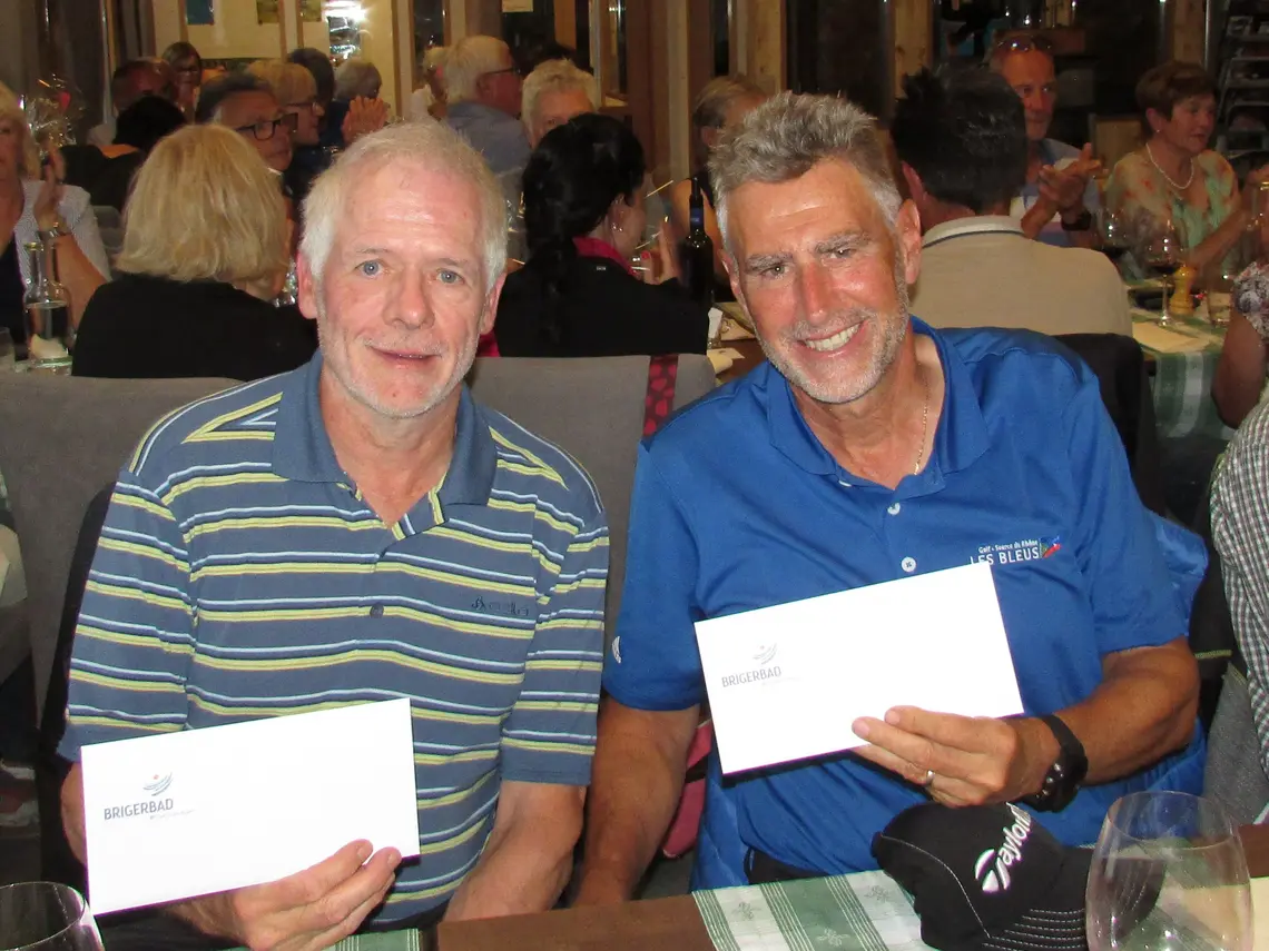 Edgar Salzmann und Lucia Petta setzen ihren Ball bei der Aufgabe Nearest-to-the-pin am präzisesten und erhalten die verdiente Belohnung. Anstelle von Können kommt bei der Verlosung zweier vom Club gesponserten Gratiseintritten ins Brigerbad Fortuna ins Spiel. Diesmal können zwei Senioren profitieren: Claude Graf und Edgar Salzmann.