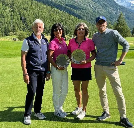 Der Platz präsentierte sich in perfektem Zustand, die Greens wunderschön aber herausfordernd und noch herausfordernder waren die nicht ganz kantigen Lochkanten ;-). Die Organisation durch den GC Sion war ausgezeichnet. Kompetent und charmant amtete die Sion Captain, Kirsten Hildbrand, als Starterin. Zügig kamen die Flights voran und so trafen sich alle entspannt und gespannt zur Resultatverkündigung. Von Roger Volken, als Captain des Walliser Golfverbandes, durften wir eine sympathische und herzliche Grussnote entgegennehmen und danach präsentierte der Sion Manager, Sébastien Paratte, galant die folgenden Siegerteams: